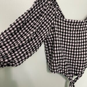 Such a fun crop top! Size M off the shoulder top. Black and white checkered.