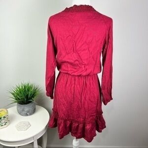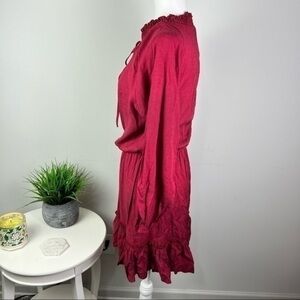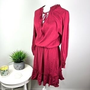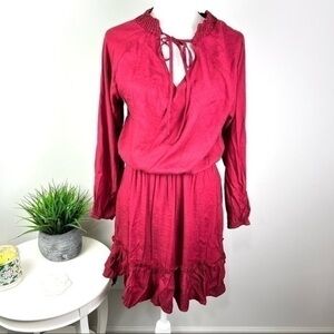 Sucrefas Womens Tiered Dress Red Ruffles Keyhole Neck Tie Long Sleeve S