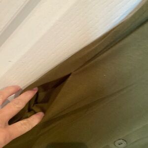 Gorgeous rich green large buttons all the way down side slits at the bottom usable pockets