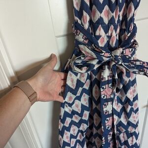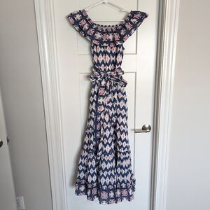 Sue Sartor Marais Maxi Dress 100% Cotton - Bubble Navy Ikat sz S