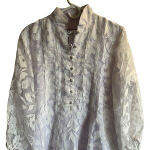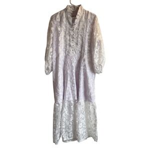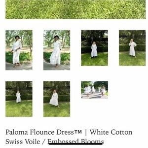 Gorgeous and lightweight "Paloma" Flounce dress from Sue Sartor in Swiss voile fabric. Size Large and in great preowned condition; no visible flaws to this piece but please note that the sash/belt is missing. This looks darling unbelted or you can pair any of your own belts with it. This is a perfect piece for brides!