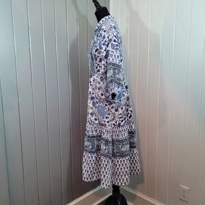 Sue Sartor Women's Size XS $495 Flounce Chinoiserie Blues Floral Dress A-Line