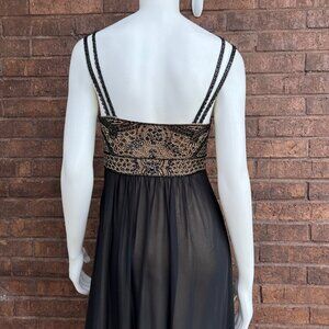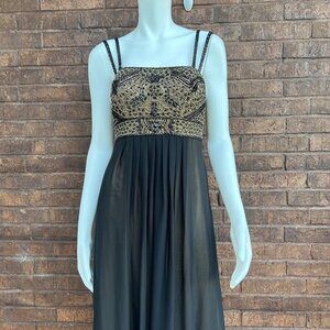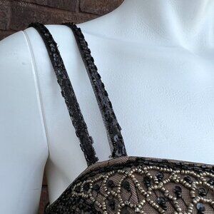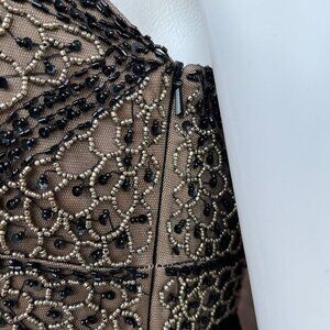 Sue Wong Black & Tan Beaded Evening Dress Gown Sz 4