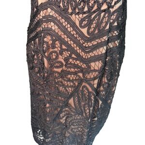 Sue Wong Cocktail Dress Size 12 Black Nude Lining Lace Beaded Altered