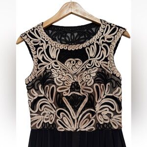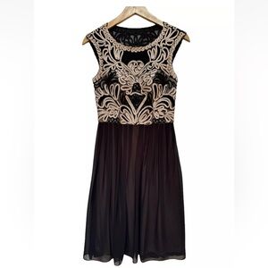Sue Wong Demask Bateu Neckline Knee Length Black Cocktail Dress Sz 0