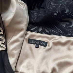 Sue Wong Demask Bateau Neckline Knee Length Black Cocktail Dress Sz 0