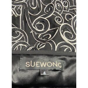 Sue Wong Dress Black White 4 Cocktail Bubble Hem Silk Soutache Lace Floral