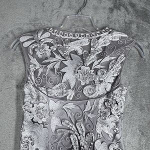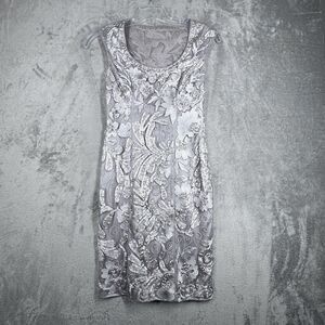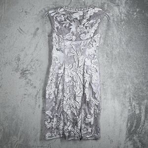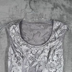 Sue Wong Dress Womens 2 Silver Textured Art Deco Elegant Formal Gown Party Glam