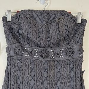 Sue Wong Embellished Strapless Maxi Dress Size 0 Charcoal Evening Gown