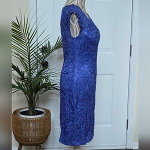 Sue Wong Embroidered Blue Sheath Cocktail Dress Size 10