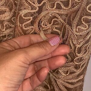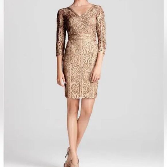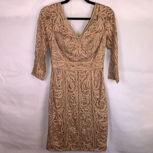 Sue Wong Lace Three Quarter Sleeve Taupe Dress