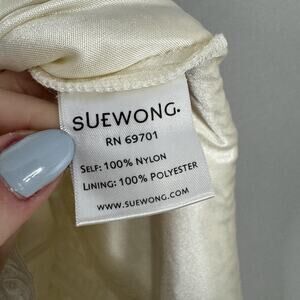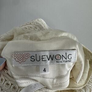 Sue Wong Nocturn Dress Womens 4 Cream Lace Sheath Bridal Cocktail Embroidered