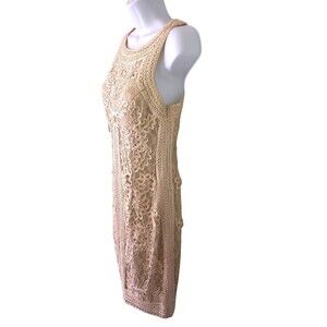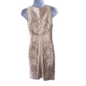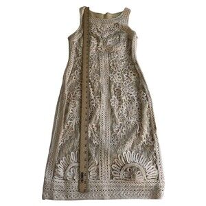Sue Wong Nocturne Beaded Sequin Ivory Sheath Dress Wedding Cocktail Size 4