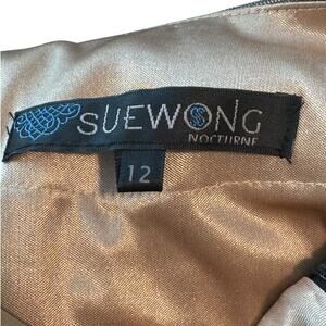 Sue Wong Nocturne Black Beaded Dress Size 12 Short Sleeve Floral Cocktail Party