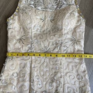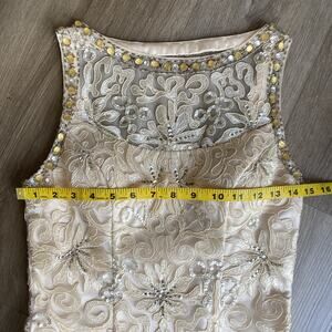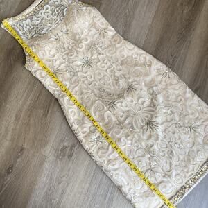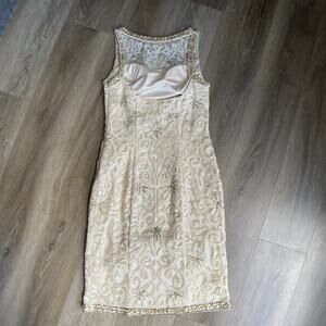 Sue Wong Nocturne Dress Sz 6 Ivory Bead Silver Lace Old Hollywood Cocktail
