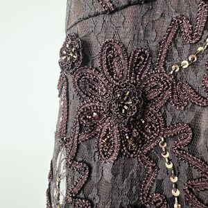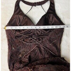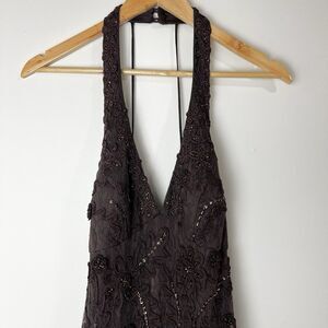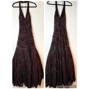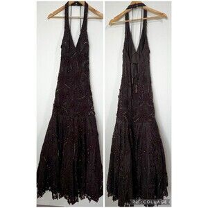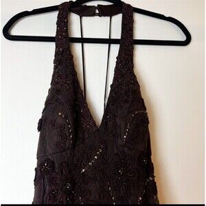 Sue Wong Nocturne Formal Dress Brown Lace Beaded Halter Maxi Size 8