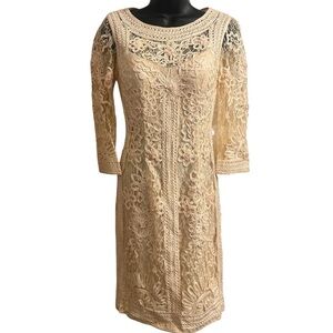 Sue Wong Nocturne Beaded Cream Sheath Cocktail Dress Floral Pattern