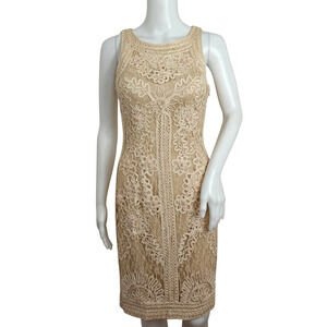 Sue Wong Nocturne soutache lace dress in women's size 2. Sleeveless. Lightly padded bra. Small slit in back. Sheer neckline and back. Side zipper. Dress is lined. Gently pre-owned.