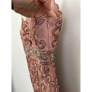 Sue Wong Nocturne Women's Beaded Mini Dress Pink Size 4 Scalloped Lined V-Neck