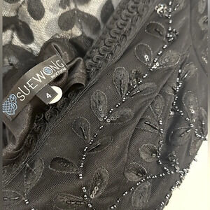 Sue Wong Nocturne beaded sequin little black dress cocktail mesh NO TAGS vintage