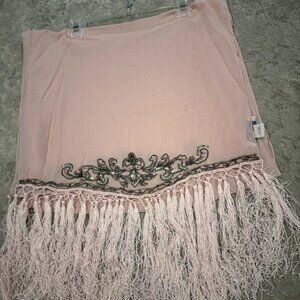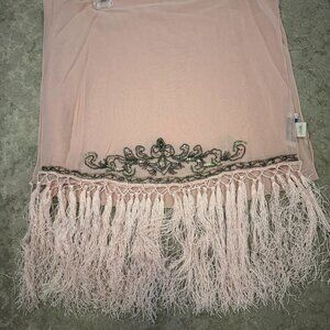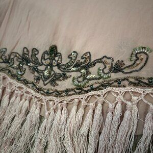 Sue Wong Scarf SILK Dress Shawl Lght Pink Rose Sheer Chifon Bead Sequin Large 25