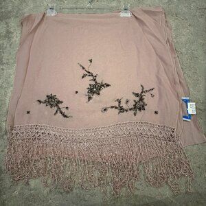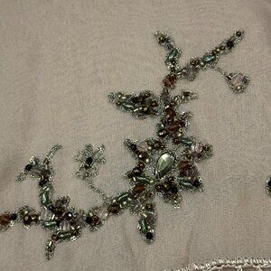 Sue Wong Scarf SILK Dress Shawl Mauve Pink Brown Silver Jeweled Beaded Large 28