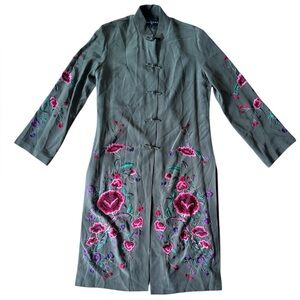 Sue Wong Size 6 Silk Kimono Jacket Olive Green Embroidered Floral Evening Coat