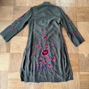 Sue Wong Silk Size 6 Kimono Jacket Olive Green Embroidered Floral