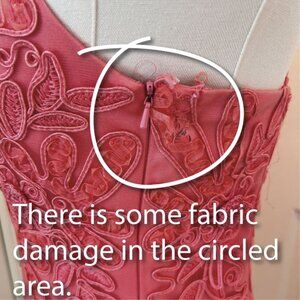 This dress is in great condition except for a small area under the armpit where the zipper is. There is some fraying you can see in the close up I have provided.