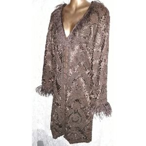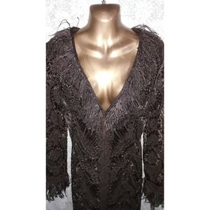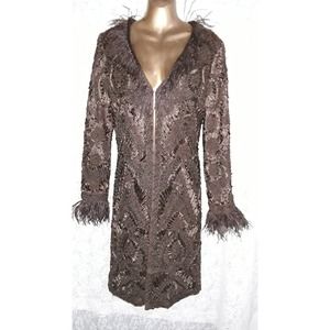Sue Wong Sz 10 Old Hollywood Glam Soutache Ostrich Feather Evening Jacket