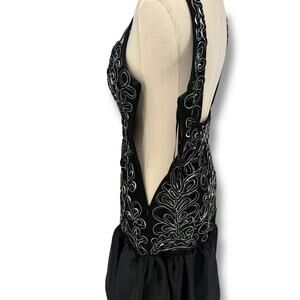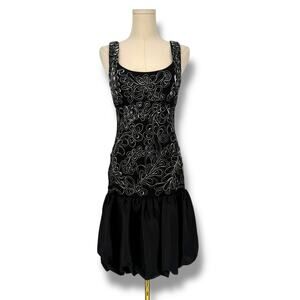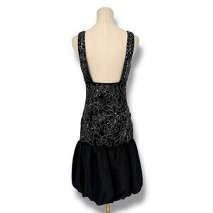 Sue Wong Vintage Embroidered Silk Cocktail Dress, Drop Waist Bubble Hem Black 2