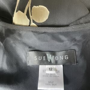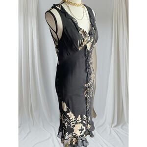 Sue Wong Womens Silk BurnedOut Midi Slip Black Tan dress 90s Y2K Vintage 12 L 10