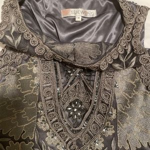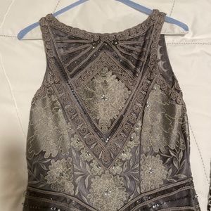 Sue Wong designed formal dress with intricate beating and embroidery. Size 4. Perfect for black tie event. Hits right below the knee