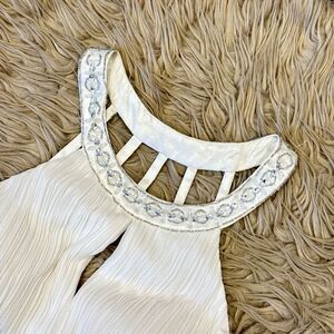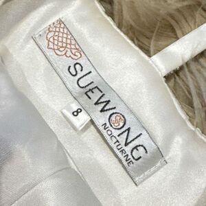 Sue Wong short white beaded dress size 8. Perfect for bride who doesn’t want to be too formal. Also great for a bridal shower or a black-and-white ball.  no stains, but there is some loose or missing beading around the neck line as picture. Not very noticeable.