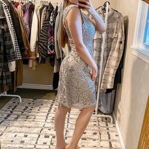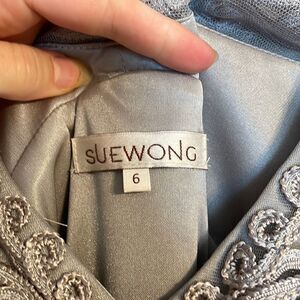 Sue Wong Embroidered Cocktail Dress Silver 6