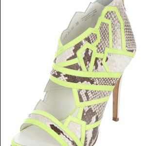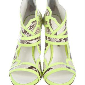 Suecomma Bonnie snake-print sandals w/neon trim, in excellent condition!