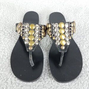 Suecomma Bonnie Sandals Women's US 7 FR 38 Black Embellished Thong Flip Flop