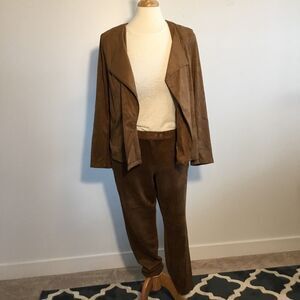 Suede 2 pc Zip Jacket ankle pants suit L (12/14) Old Money Clean Girl J. Jill