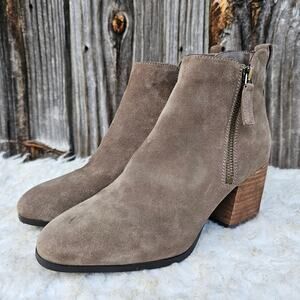 Suede Ankle Boot Tan Leather Blondo Waterproof Siena Bootie Size 8.5 Zip Heeled