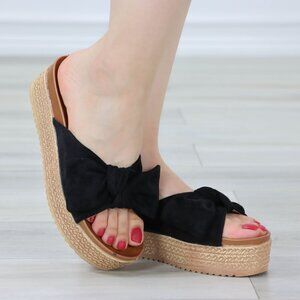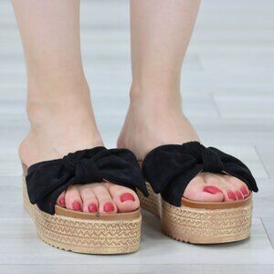 Suede Black Bow Comfort Platform Sandal Slip On Sliders