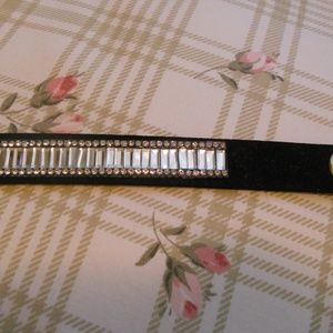 Beautifully hand made choker, pictures don't do it's justice, new, haven't been worn. Black suede with grey, black and clear jewels all throughout the piece. Too big for me, it's why i am selling it. Total length is 16 1/2" has 3 adjustable snaps. Measures for snaps 14 1/4" for the 1st snap from the inside of the choker then 1/2" and 1/4" out, apart from each snap.
