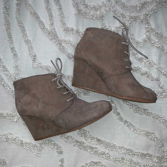 Tan lace up booties. Size 7.5, purchased at Macy’s. Great condition.