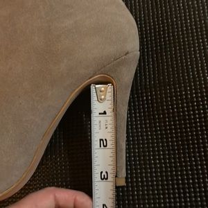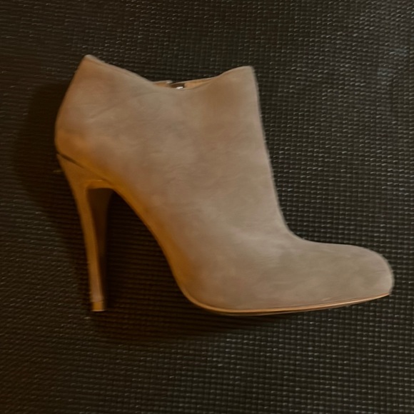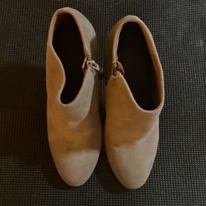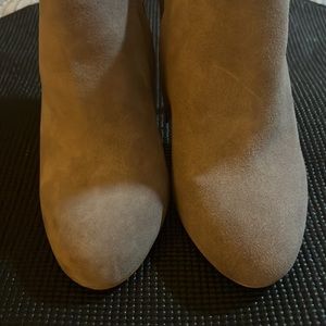 Gorgeous camel color suede booties. Love this shoe. Great condition (and already treated). Size 8.5 but I was an 8 and they still worked.
