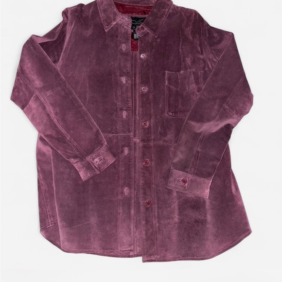 Beautiful purple leather/suede button up jacket. First photo shows color accurately. In excellent condition!