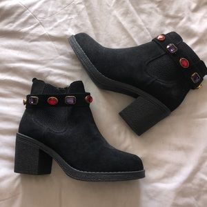 NASTY GAL suede diamond zip-up Chelsea boot