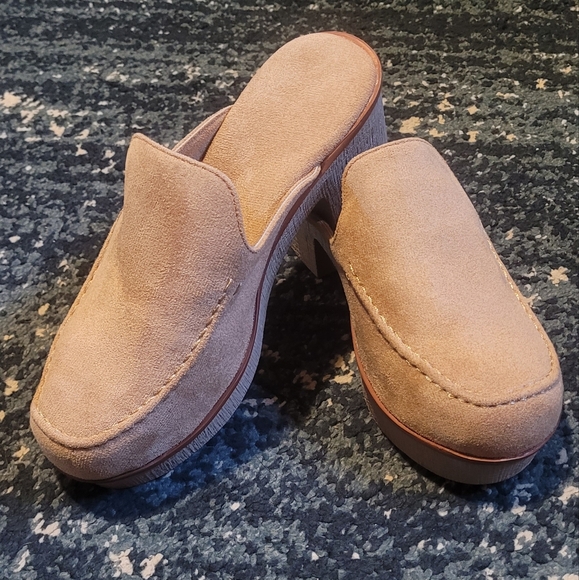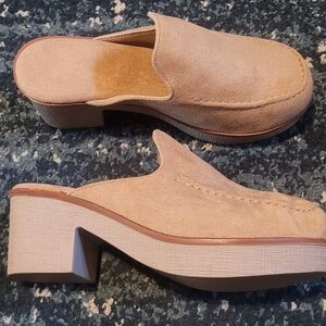 Suede clogs size 6.5, unknown brand. Never worn.