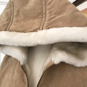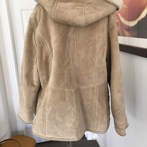 Heavy weight and Sherpa lined. This coat will keep you warm! A few spots as shown.