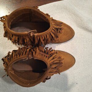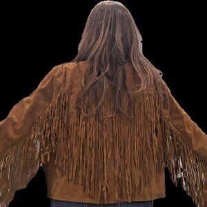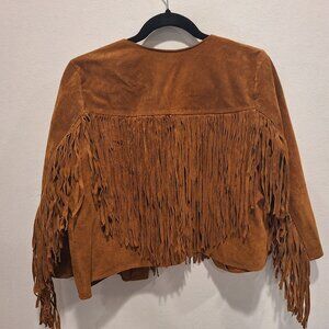 Beautiful suede fringe cowgirl jacket. Used only twice. Great condition! It was bought from Forever 21. Size=Medium, Color=Light Brown, Material=Suede Price=$22
