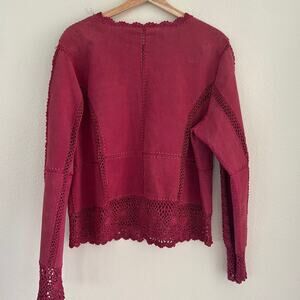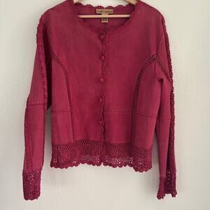 Suede Essentials Jacket Crochet Button SZXL Pink Western Boho