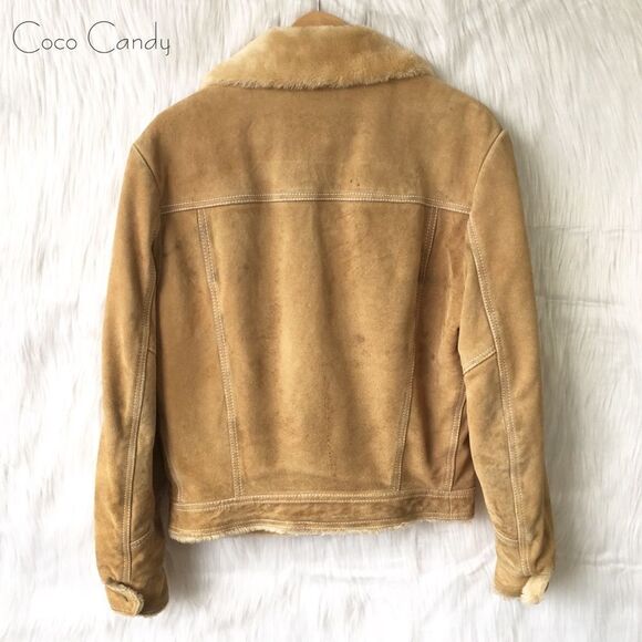 Suede Faux Fur Men’s Tan Front Button Jacket. Vintage. Suede. Solid tan. Faux fur lining. Long sleeve. Front button closure. Two side pockets. Two chest pockets. Wide fold over collar. This jacket does show signs of wear as shown above in photos✨